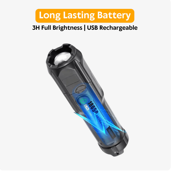 Compact and ultra-bright, this mini torch is perfect for on-the-go illumination, ensuring you never find yourself in the dark whether you're outdoors or at home.